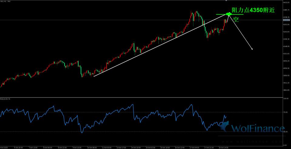 周一(10月20日)美盘金价继续反弹走高,市场前高阻力点,现货黄金时段环绕4300美元交投。回首上周,金价刷新高点4379。38后呈现急挫,单日最大跌幅约1。76%,为5月中旬以来最显著的一次盘中回撤。本周开局,跟着美元取美债收益率的阶段性回吐,金价修复,但多空不合正在4300附近快速堆积,短线进入“强趋向中的高位博弈”阶段。利率取通缩的从轴仍方向黄金。 市场全体仍倾向于认为美联储正在进入议息寂静期后延续“更长时间维持较高但不再较着上调”的沟通径,通缩数据则成为下一次的焦点。本周的美国CPI取S&P Global PMI将间接影响现实利率取表面收益率的配比,若通缩环比暖和,现实利率下行将有益于黄金维持强势布局;若读数不测上行,收益率反抽可能触发黄金的手艺性回撤。取此同时,英国央行、央行、联储、央行的取,形成对全球利率预期的“多点校准”,间接影响黄金的套保取设置装备摆设需求。财务取政策不确定性供给避险溢价。 美国停摆已进入延宕态势,财务掣肘对短期增加预期形成扰动,风险资产的折现率取风险溢价同步波动。白宫经济参谋放出“或正在本周竣事”的乐不雅口径,但汗青经验表白,此类口径的兑现具有不确定性,市场对其反映趋于隆重。政策层面的恍惚地带,帮帮黄金正在高位维持必然的避险溢价。地缘取资金面仍正在“慢变量”支撑。 中东场面地步阶段性升温,使得“事务风险”的尾部概率不容轻忽,黄金的避险取对冲功能被持续订价。中持久维度上,部分的购金需求取ETF持仓仍供给“慢变量托底”,正在动期间对冲部门短线资金的获利告终冲击。取此同时,瑞郎、日元正在风险偏好降温时的相对走强,会取美元的轮动配合影响黄金的边际买盘取对冲强度。RSI(14):读数56。9,处于较着上涨区间。强势趋向中高位钝化能够维持一段时间,但一旦周线附近频频不破并掉头,将构成取价钱新高的负。汗青价位:前期高点3451。14 / 3438。80已完成“阻力转支持”的脚色切换,若呈现极端回撤,布林中轨 3913。29是中线(下轨)是极限风险对冲位。延续上攻(偏多):若价钱企稳4300之上,并陪伴日内阳线实体扩大、收盘接近或坐上 4333。22,则上轨“行走”布局得以延续,方针将从头指向4379。38。此径要求:RSI连结高位钝化、MACD红柱不较着缩短或再度放大,不然冲高后仍有频频。手艺性降温(偏空):若价钱多次上冲4333。22未果并回落跌破4300,则将触发对4200。00的回测。若4200。00失守且陪伴MACD死叉呈现,回撤空间将向布林中轨 3913。29打开。